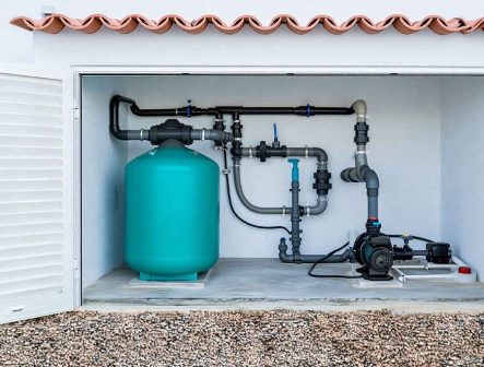 La taille du local dépend directement des équipements prévus : pompe, filtre, coffret électrique, traitement automatique, pompe à chaleur ou encore électrolyseur. Dans cet article consacré au local technique, vous trouverez une liste succincte des équipements qu’il peut contenir. Un espace trop étroit devient inconfortable à mesure que les équipements s’y accumulent. Pour une installation simple, un petit volume peut suffire, mais il est souvent plus judicieux de prévoir un local permettant de circuler facilement autour des appareils. Cela facilite l’entretien, les réparations et les éventuelles évolutions futures de l’installation.