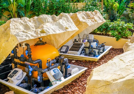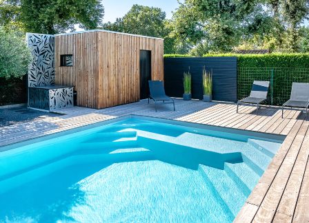 Un local technique doit respecter le style général du jardin et des abords de la piscine.
